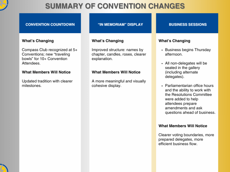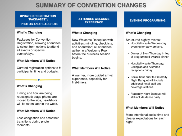 I am pleased to share the Summary of Convention Changes for 2026 with you. I hope you will be as excited about these positive changes to enhance the convention experience as I am.